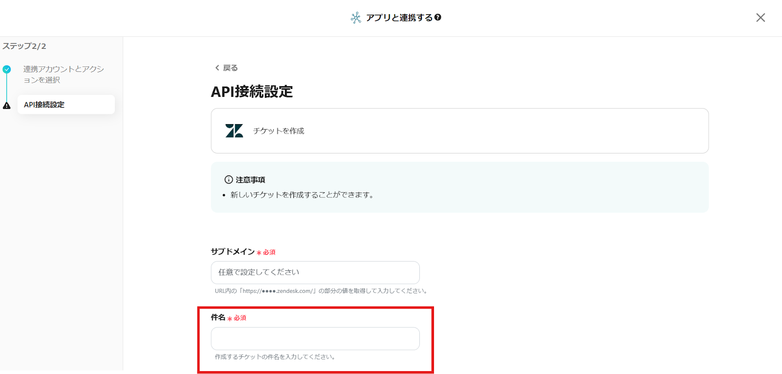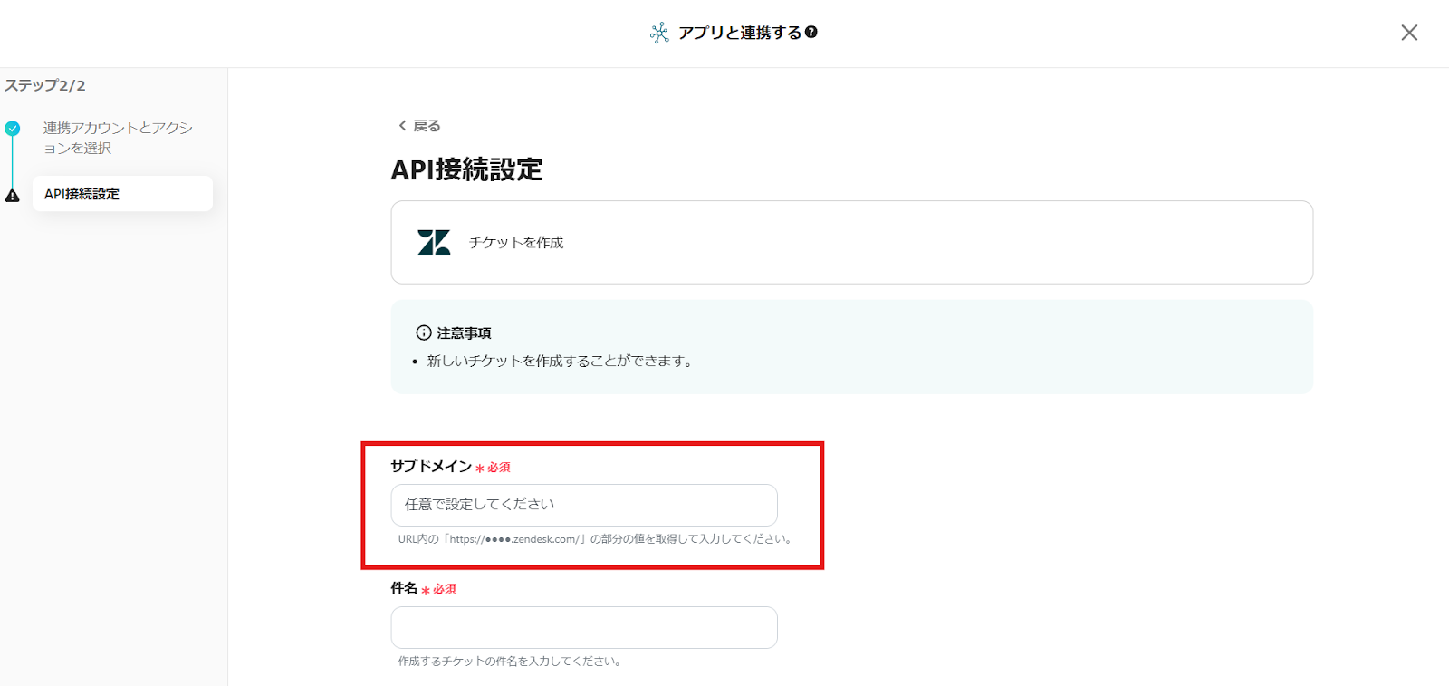 ボックス下部の補足に従い、サブドメインを入力してください。