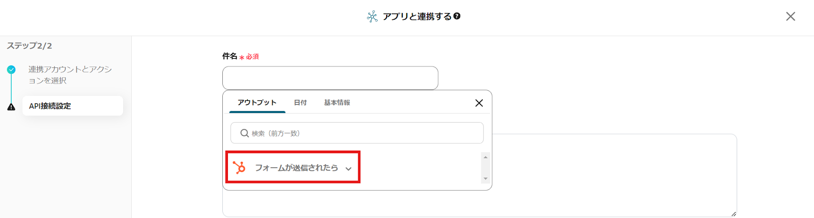 HubSpotのアイコンの「フォームが送信されたら」を選択してください。