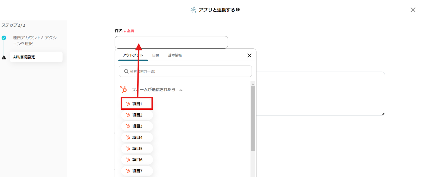 ボックスをクリックし、HubSpotのアイコンを選択します。