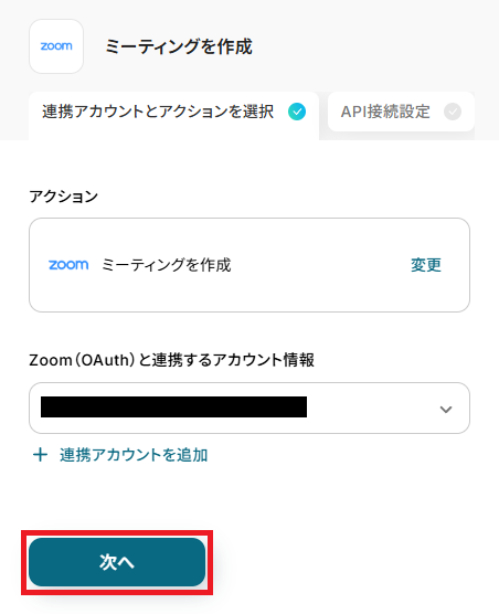 ステップ5:Zoomのアクション設定