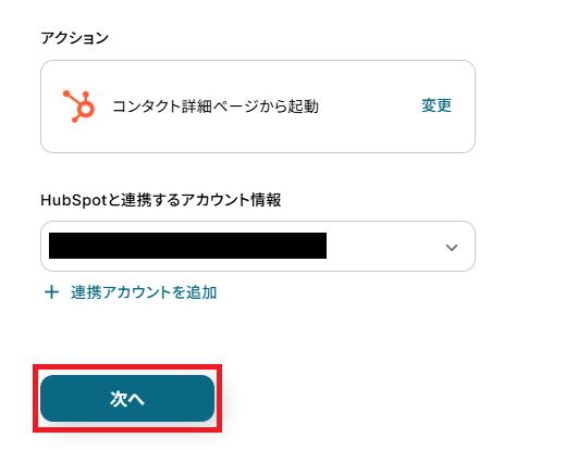 「HubSpotと連携するアカウント情報」を確認し「次へ」をクリックしましょう。