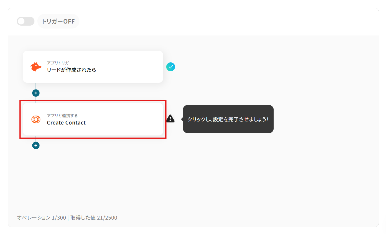 ステップ5:フロー稼働の準備 フロー画面に戻り、「全ての設定が完了しました!」と表示されていればフローの設定は完了です。 早速フローを稼働させるのであれば、「トリガーをON」をクリックします。