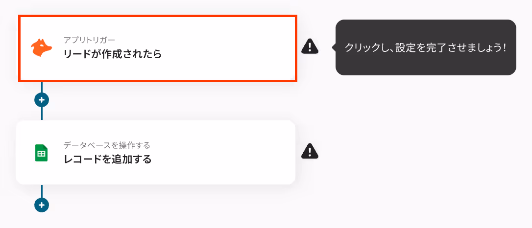 コピーしたテンプレートの「リードが作成されたら」をクリックしてください。