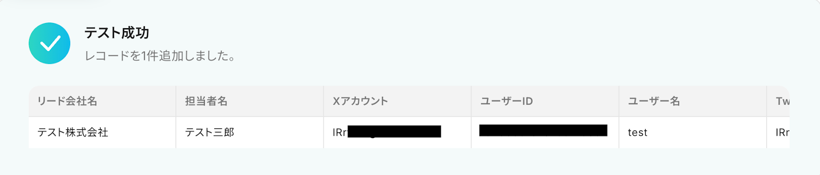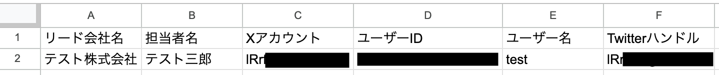 今回の連携では、Hunterで新しく作成したリードに登録されたX(Twitter)アカウントからユーザー情報を取得し、Google スプレッドシートにレコードとして追加されます。