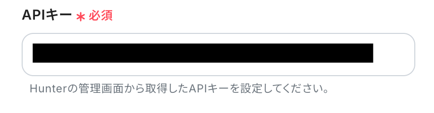 Hunterの管理画面で発行したAPIキーを入力しましょう。