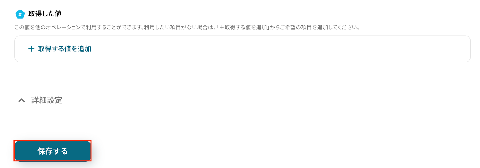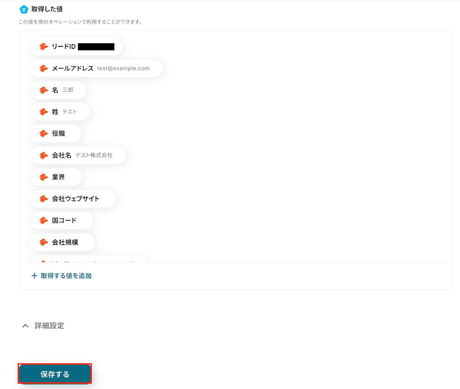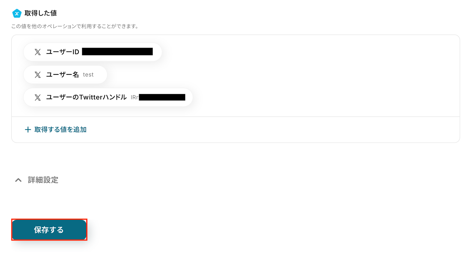 以下の画像の取得した値はこの後のステップで使用することができます。