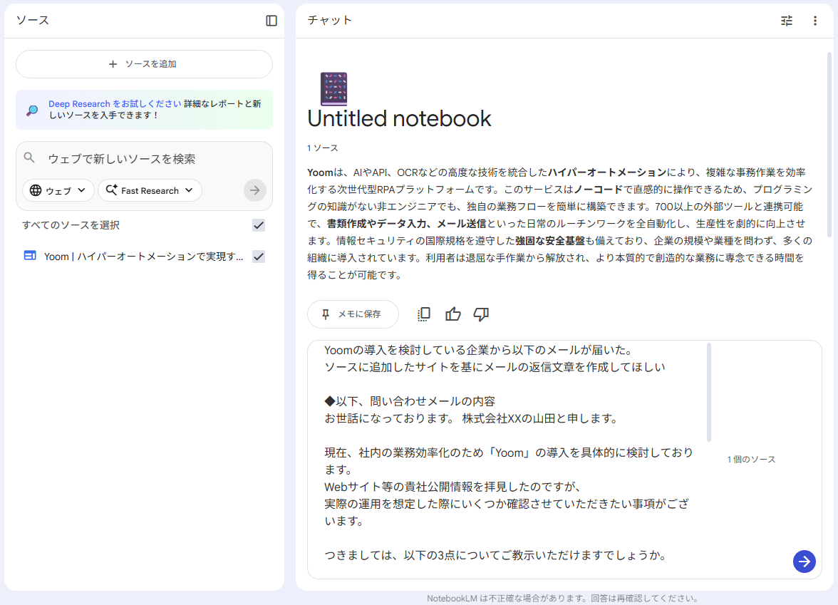 Yoomとは?ノーコードで業務自動化につながる! NotebookLMのように情報を読み込んで活用するだけでなく、