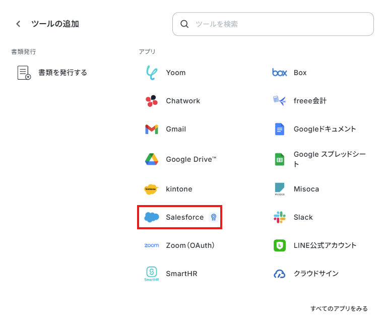 ※Salesforceはチームプラン以上でのみご利用いただけるアプリとなっています。