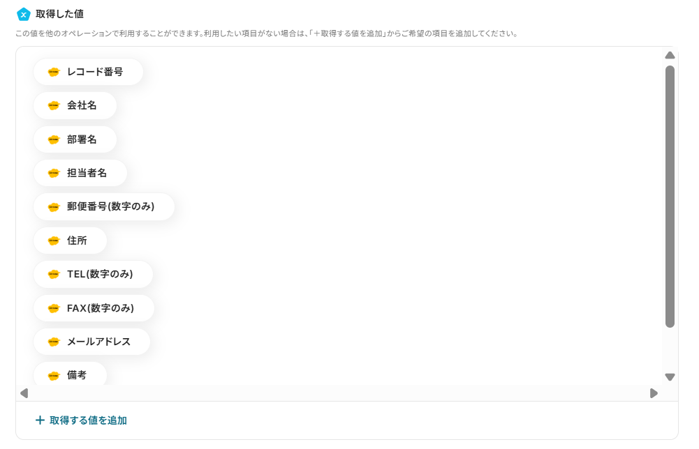 ※解説)上記のように設定することで、kintone上の情報を自動で引用することができます。