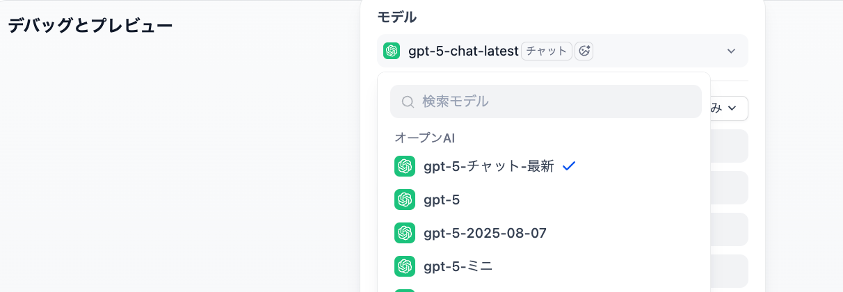 ここでも、モデルには、OpenAIのチャット向けLLMを選択しました。
