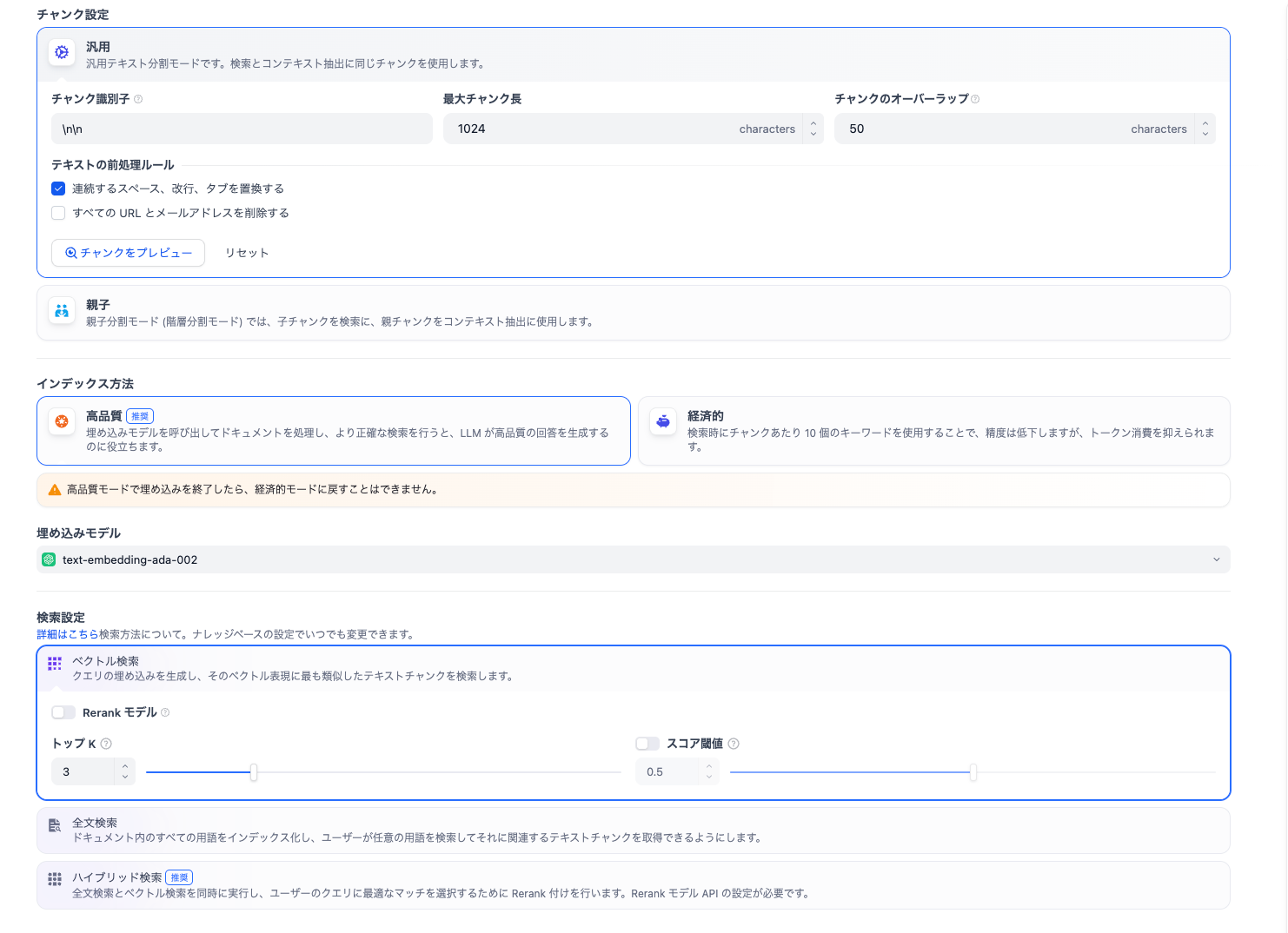 チャンク設定などの詳細は、ヘルプページを確認してみてくださいね。