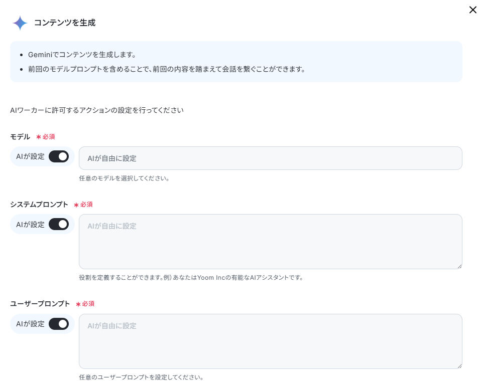 モデルやプロンプトの指定ができるため、必要に応じて明示的に設定を行いましょう。