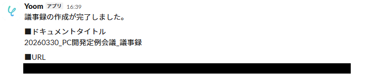 テストが完了し、Googleドキュメントでの議事録作成、Slackへの通知が実施されたことが確認できました。