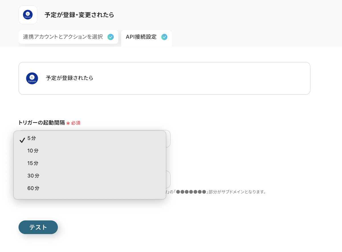 ・トリガーは5分、10分、15分、30分、60分の間隔で起動間隔を選択できます。