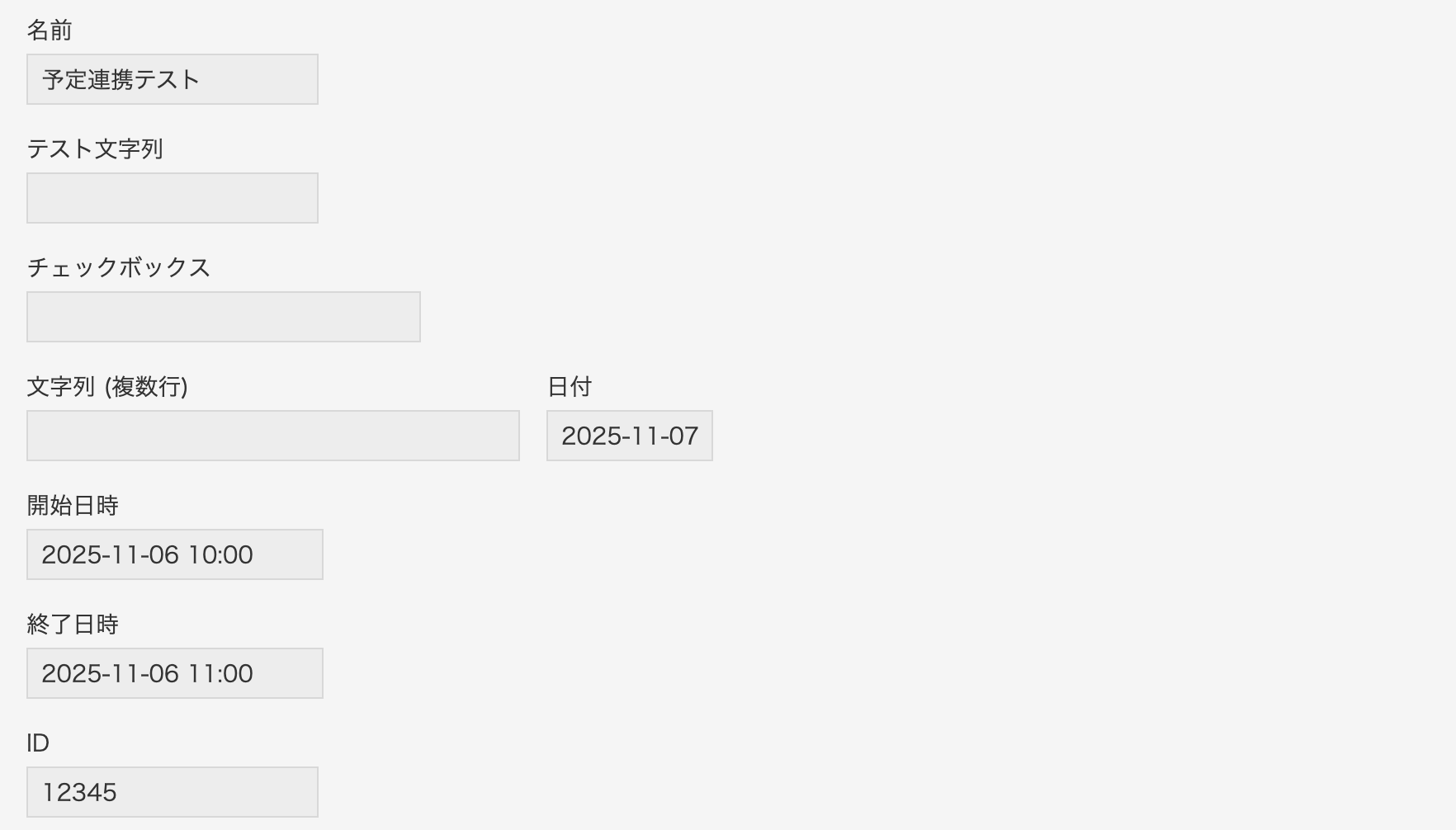 入力後は「テスト」を押して、登録した予定情報が以下のように表示されるかを確認してください。