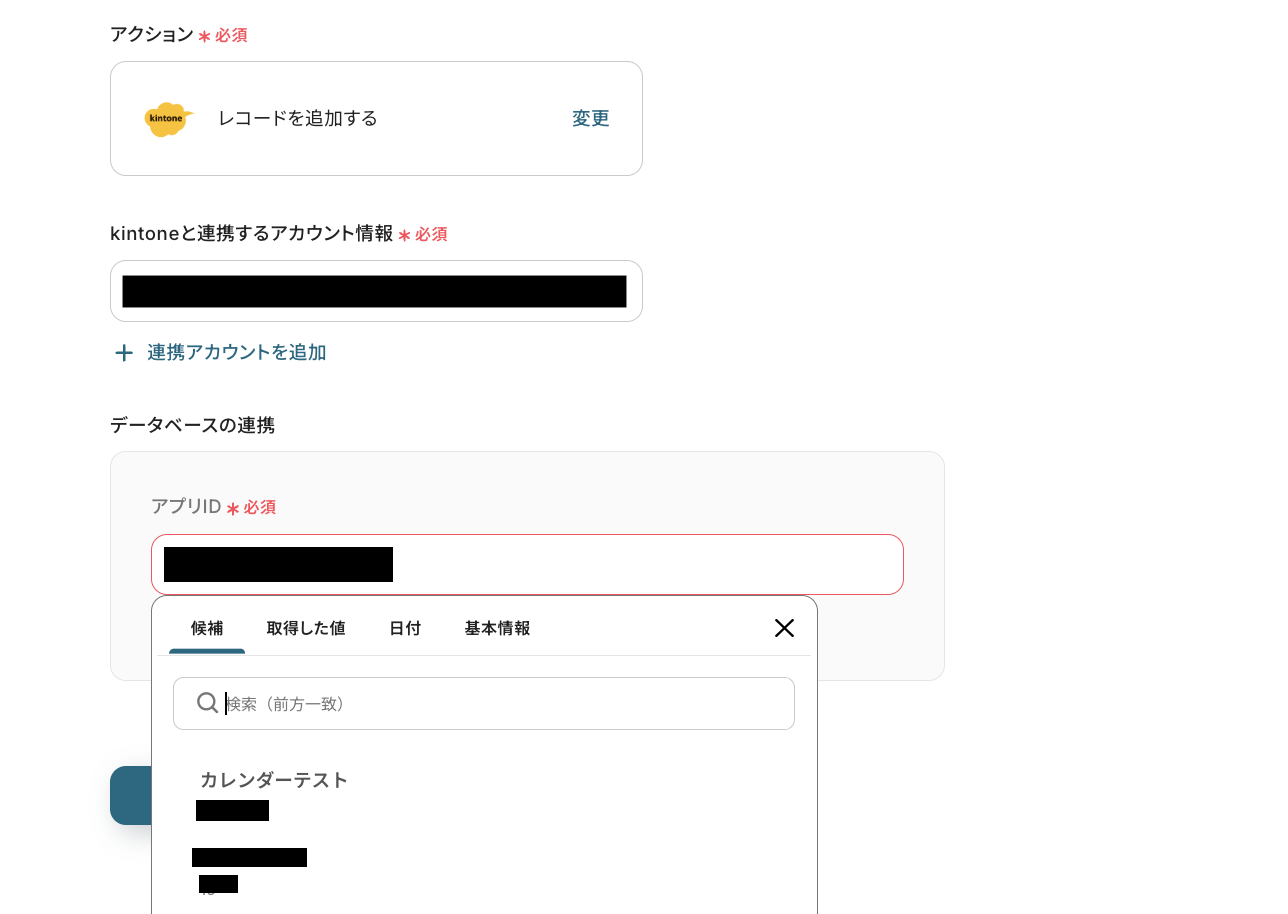 『データベースの連携』では、入力バーをクリックするとアカウントに基づいたアプリIDが表示されます。