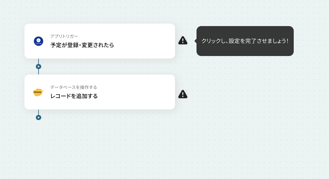 ・kintoneにレコードが追加されたらGaroonに予定を登録する方法は下記のテンプレートを参照ください。