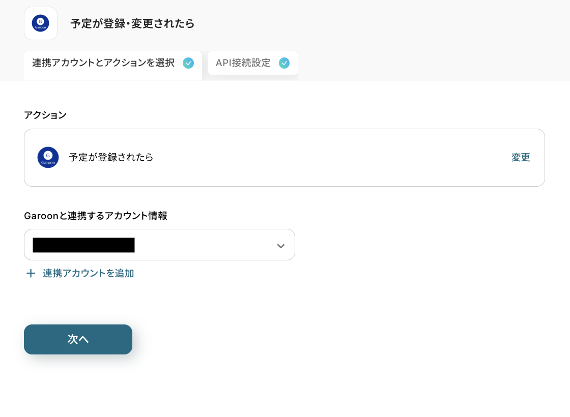 「サブドメイン」は注釈に沿って、該当する情報を入力します。この際、Garoon側でトリガーとなるアクション(今回は新規予定の登録)を行いましょう。