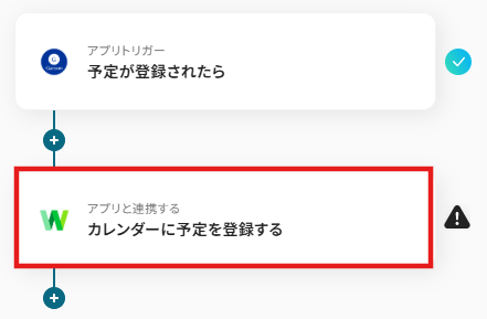フローに戻ったら、「アプリと連携する カレンダーに予定を登録する」のアイコンをクリックします。