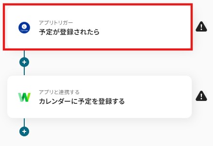 「アプリトリガー 予定が登録されたら」をクリックします。