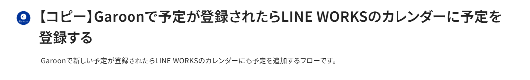 今回はまず、【Garoonで予定が登録されたらLINE WORKSのカレンダーに予定を登録する】というフローを作成していきます。