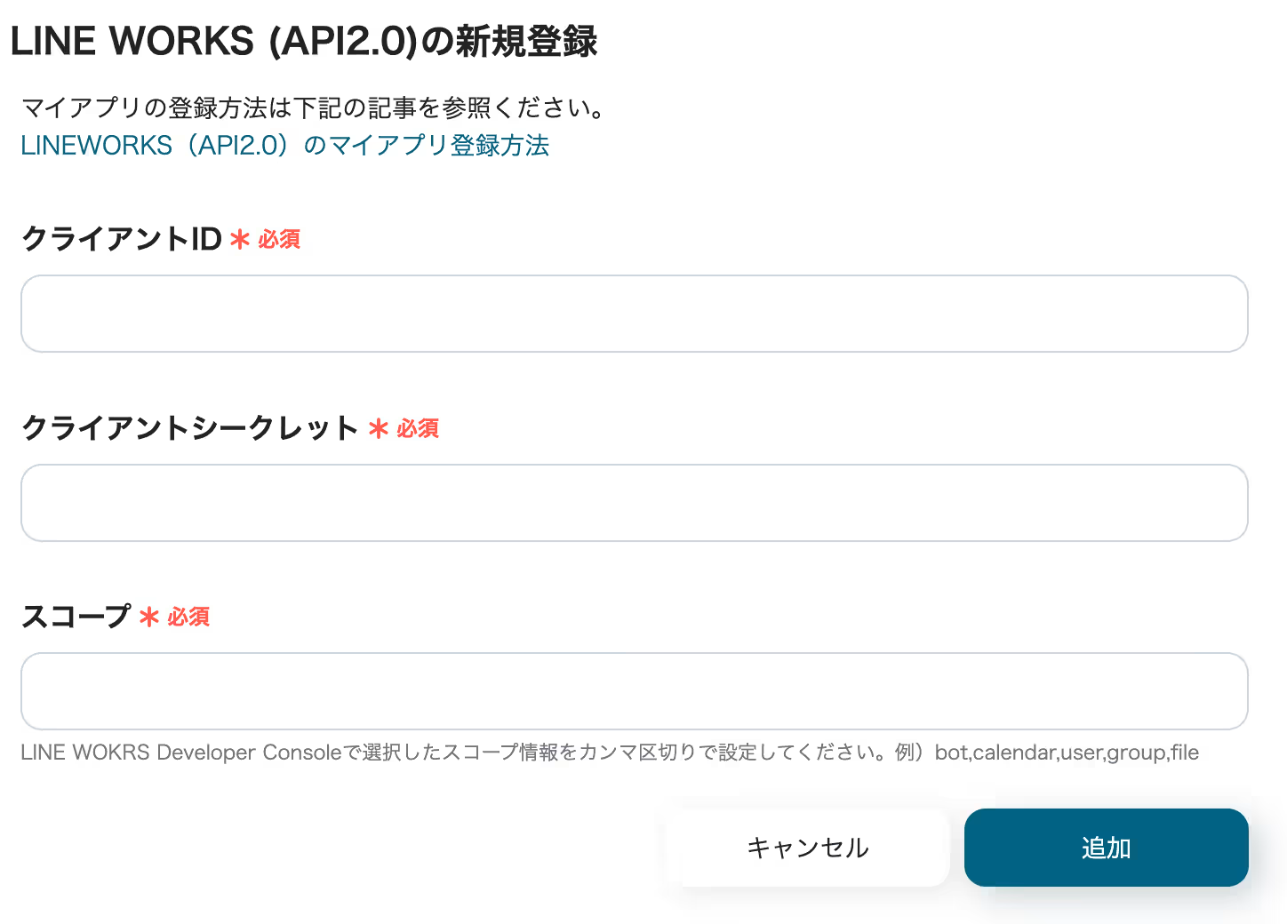 LINE WORKS(API2.0)のマイアプリ登録方法 | Yoomヘルプセンター (intercom.help)