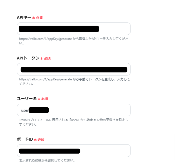 続いて、Trelloの情報をSlackに通知させるための設定です。