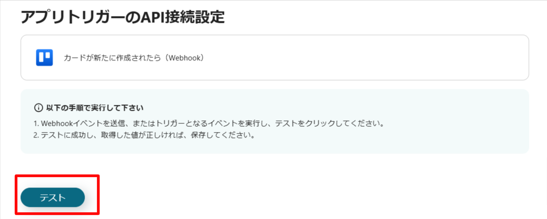 テストが成功し、アウトプットに新規作成したカードの情報が反映されたら「保存する」でトリガー設定は完了です。