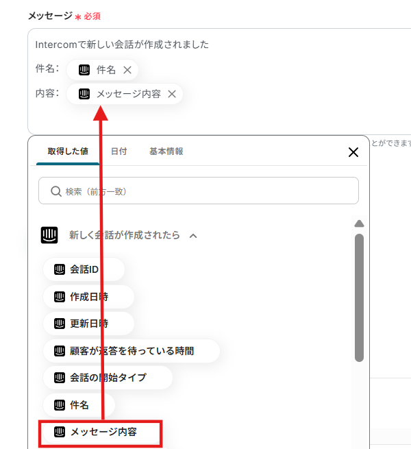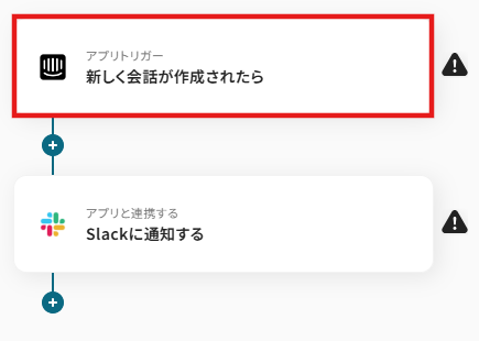 Intercomで新しい会話が作成されるアクションを起点として利用することで、社内チャットツールへの通知などを自動化できます。