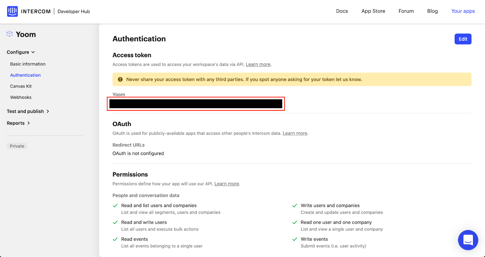 IntercomとChatworkをYoomに接続するマイアプリ登録を行ってください。
