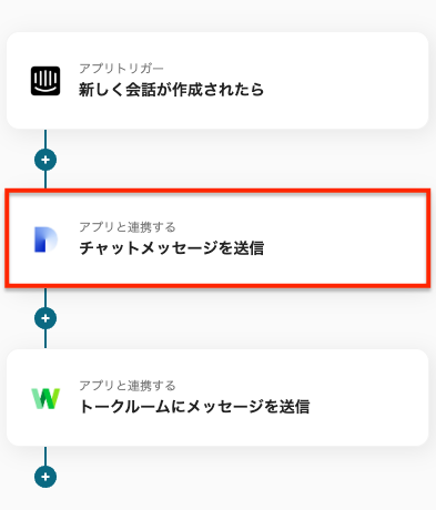 次に、Difyのアクションを設定します。「チャットメッセージを送信」をクリックしてください。