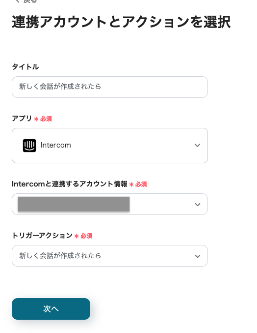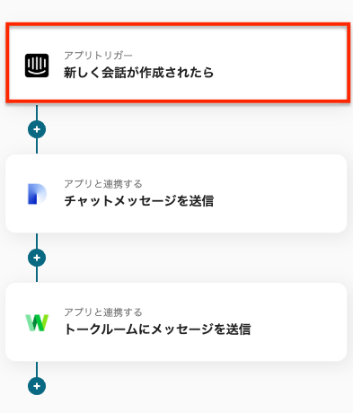 Intercomのトリガーを設定します。「新しく会話が作成されたら」をクリックしてください。