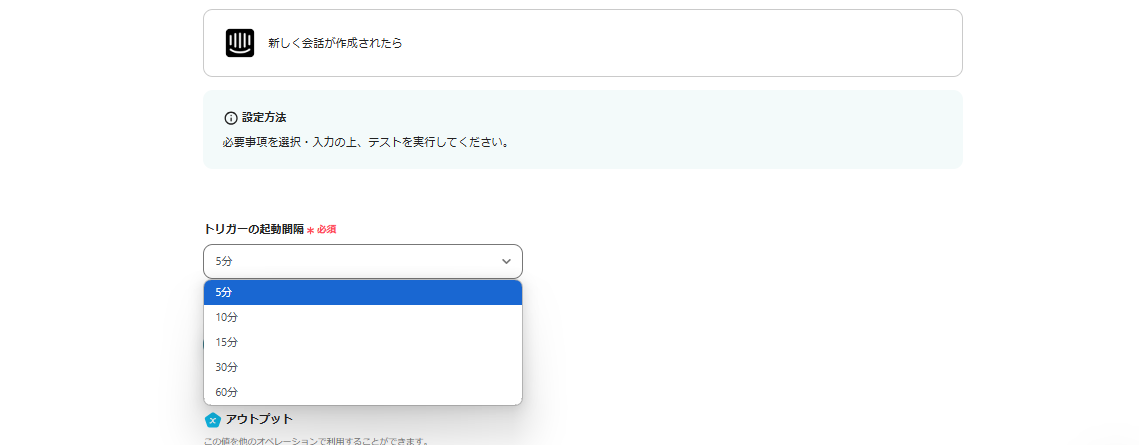 トリガーの起動間隔:プルダウンから任意で設定できます。