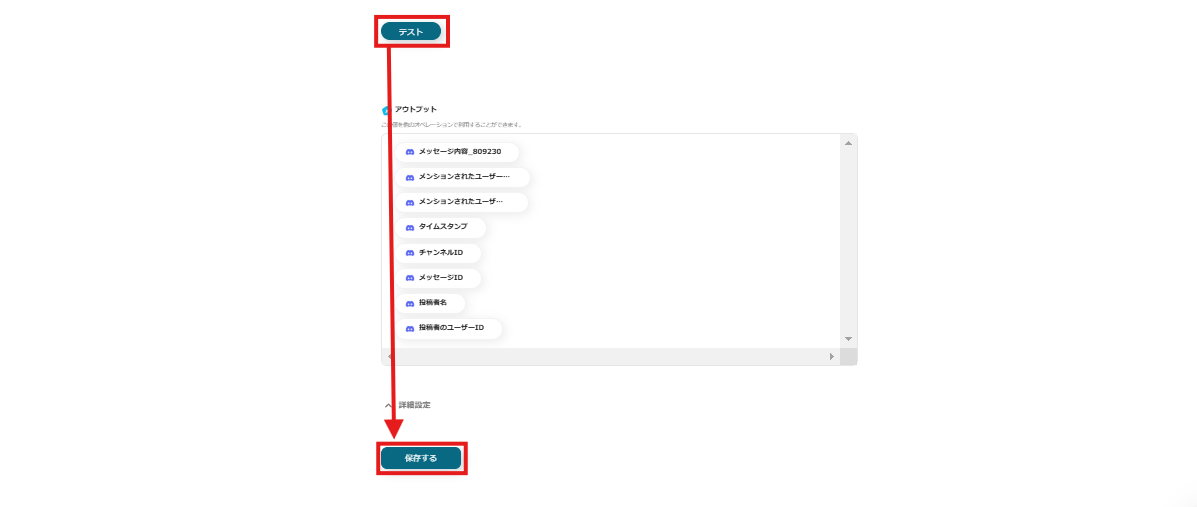 テストが成功したら、Discordにテスト用のメッセージが届くので内容を確認し、問題がなければ「保存する」をクリックしてください。