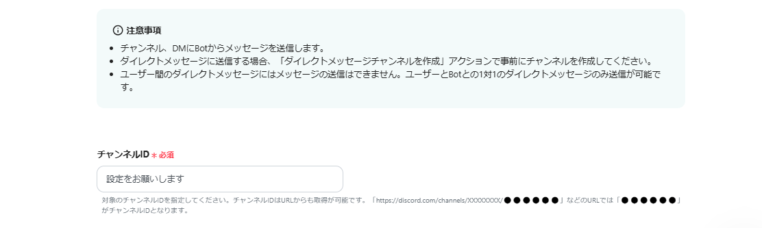 チャンネルIDは、枠外の注釈を参考に入力してください。
