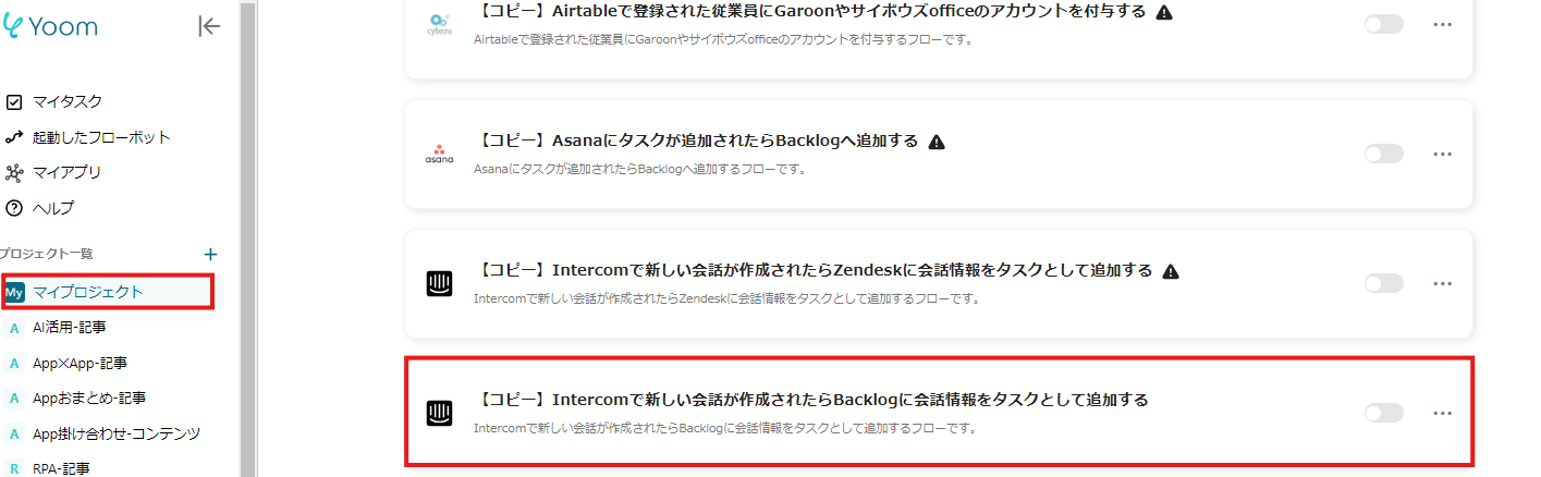 Yoomには、IntercomとBacklogを利用した自動化例が多数あります。