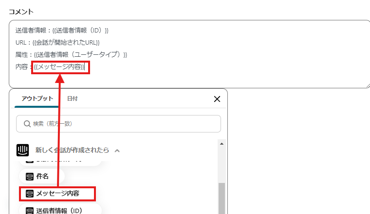 「コメント」は任意項目になっていますが、Intercomからアウトプットされた情報などを活用して、以下の画像のように詳細に記載するのがおすすめです。