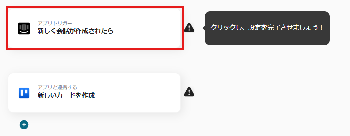 まずは、アプリトリガー「新しく会話が作成されたら」をクリックしましょう。