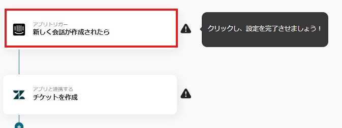 次に、アプリトリガー「新しく会話が作成されたら」をクリックしましょう。