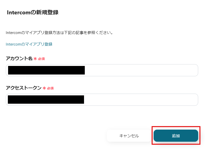上記画面が表示されたら、必須項目を入力し、「追加」をクリックしてください。