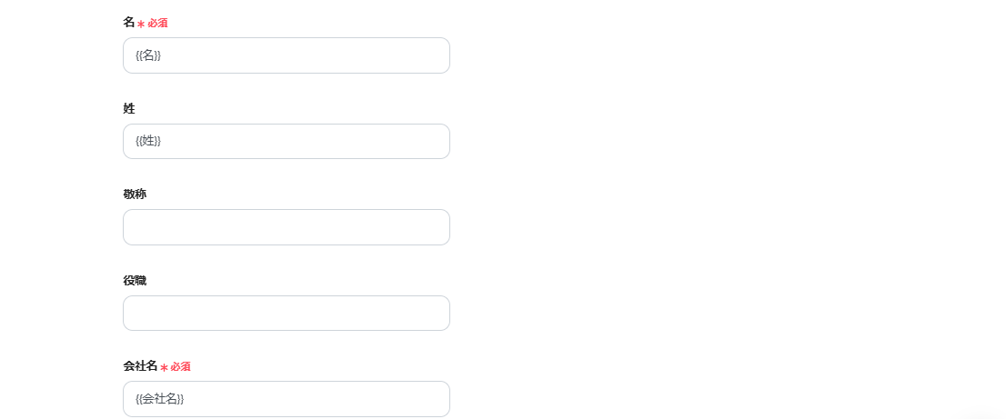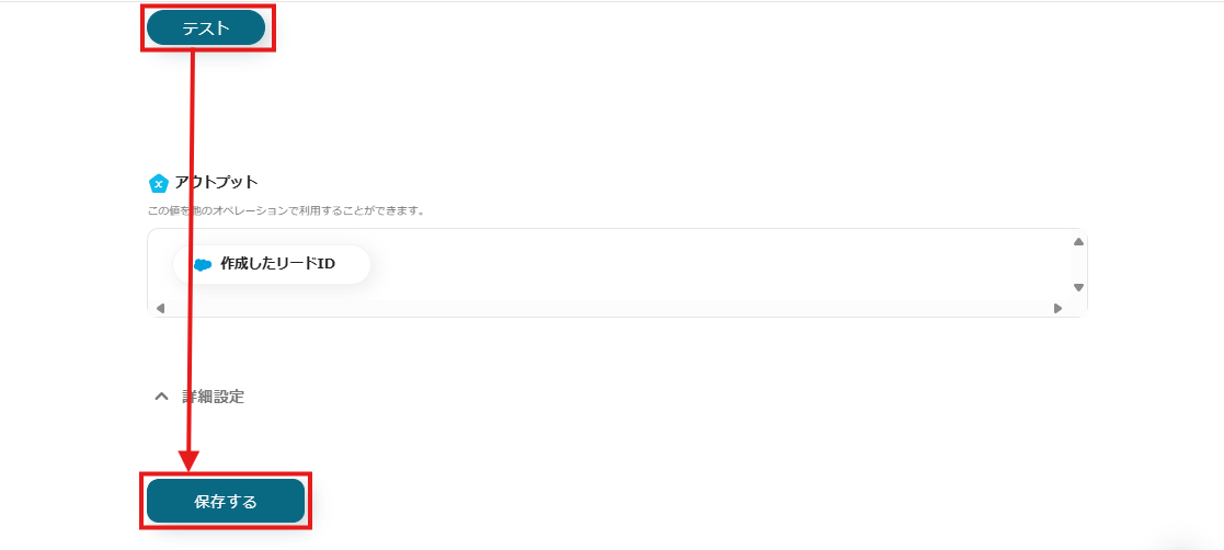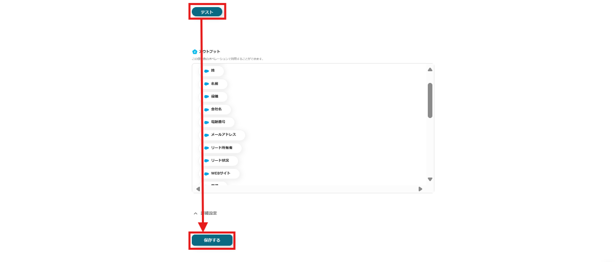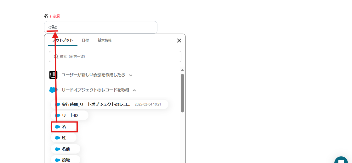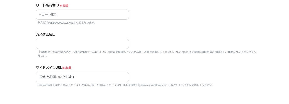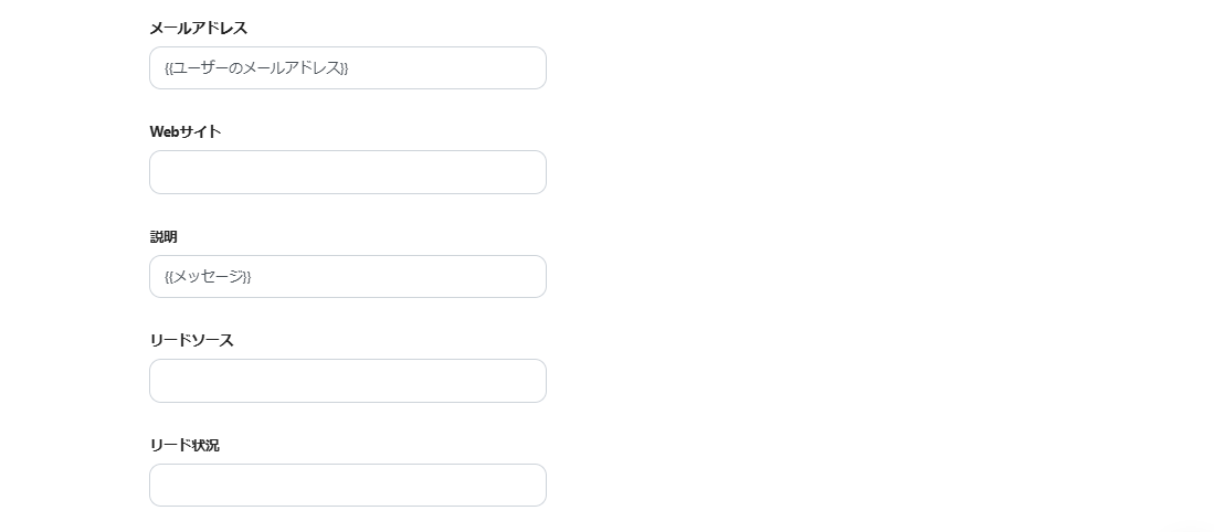 その他の、「姓」「会社名」「メールアドレス」「説明」「リード所有者ID」も同様に設定されています。