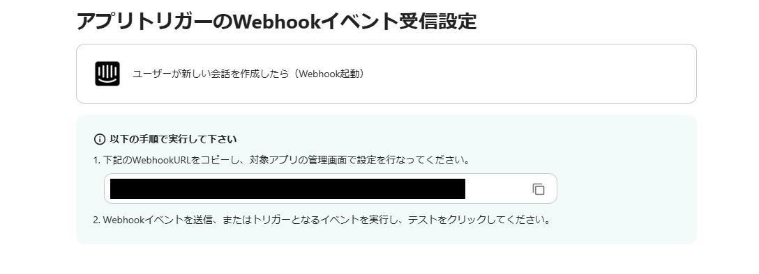 WebhookURLをコピーし、Intercomの管理画面で設定してください。