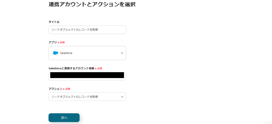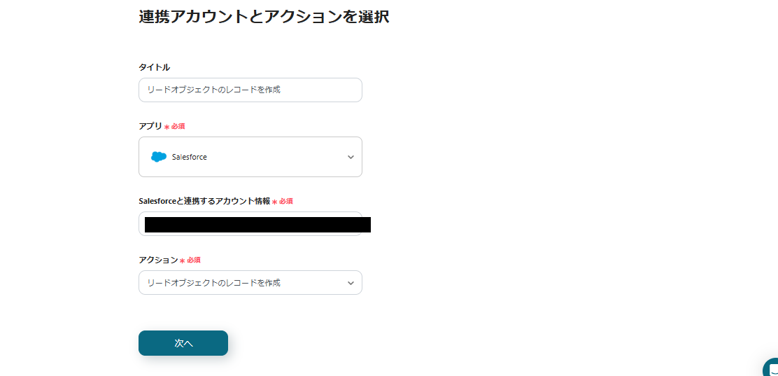 続いて、「リードオブジェクトのレコードを作成」という項目をクリックし設定していきます。