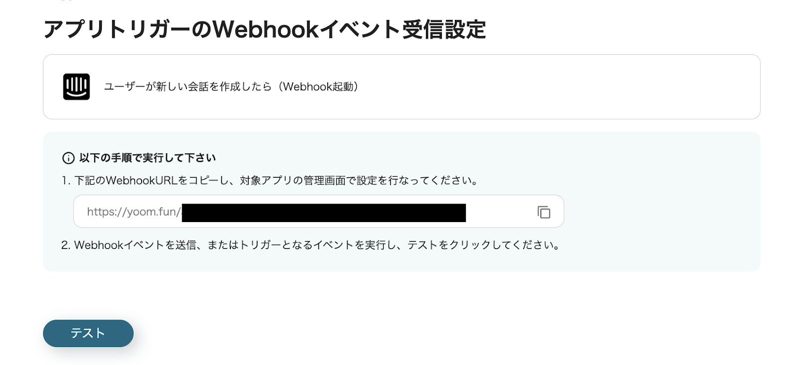 (4)次の画面では、WebhookURLをコピーし、管理画面で設定を行う必要があります。