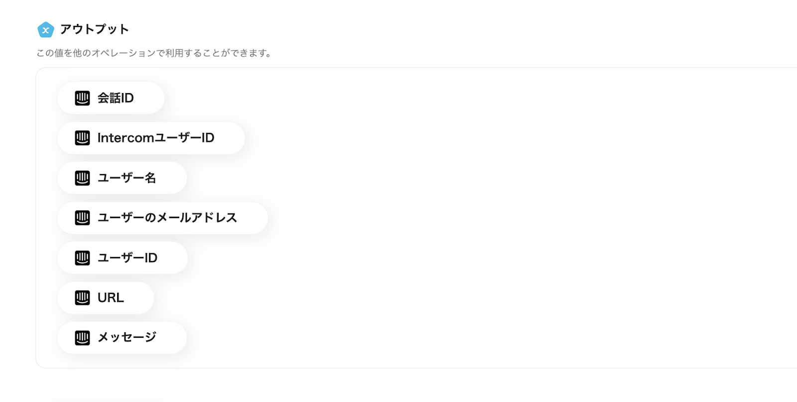 アウトプット情報は、「この値を他のオペレーションで利用することができます。」という注釈の通り、この後のステップで引用・活用できます。