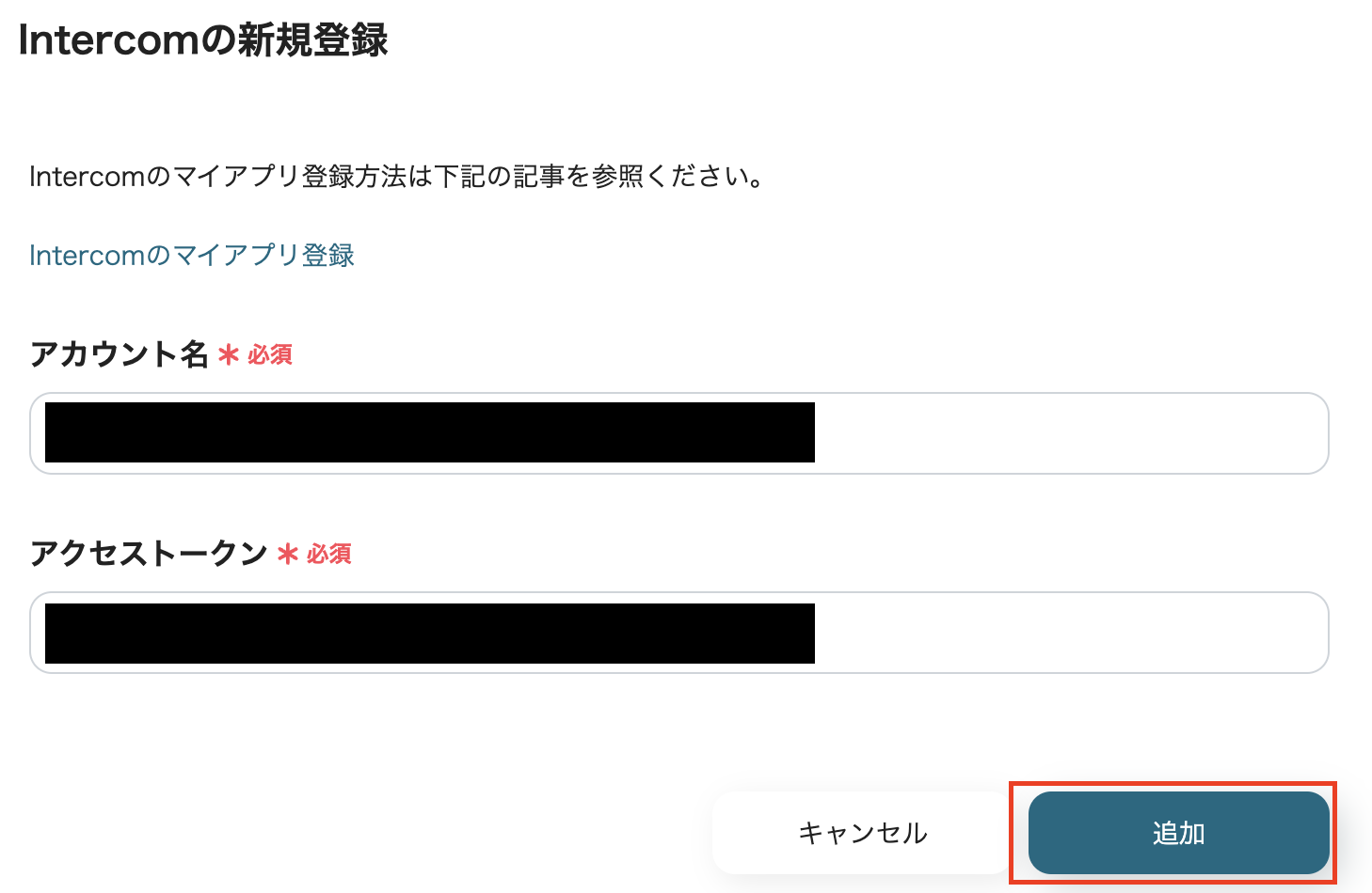 (3)「アクセス名」と「アクセストークン」を入力し、[追加]をクリックしてください。