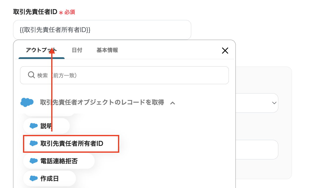 (7)次の画面で、「取引先責任者ID」に情報を入力します。
