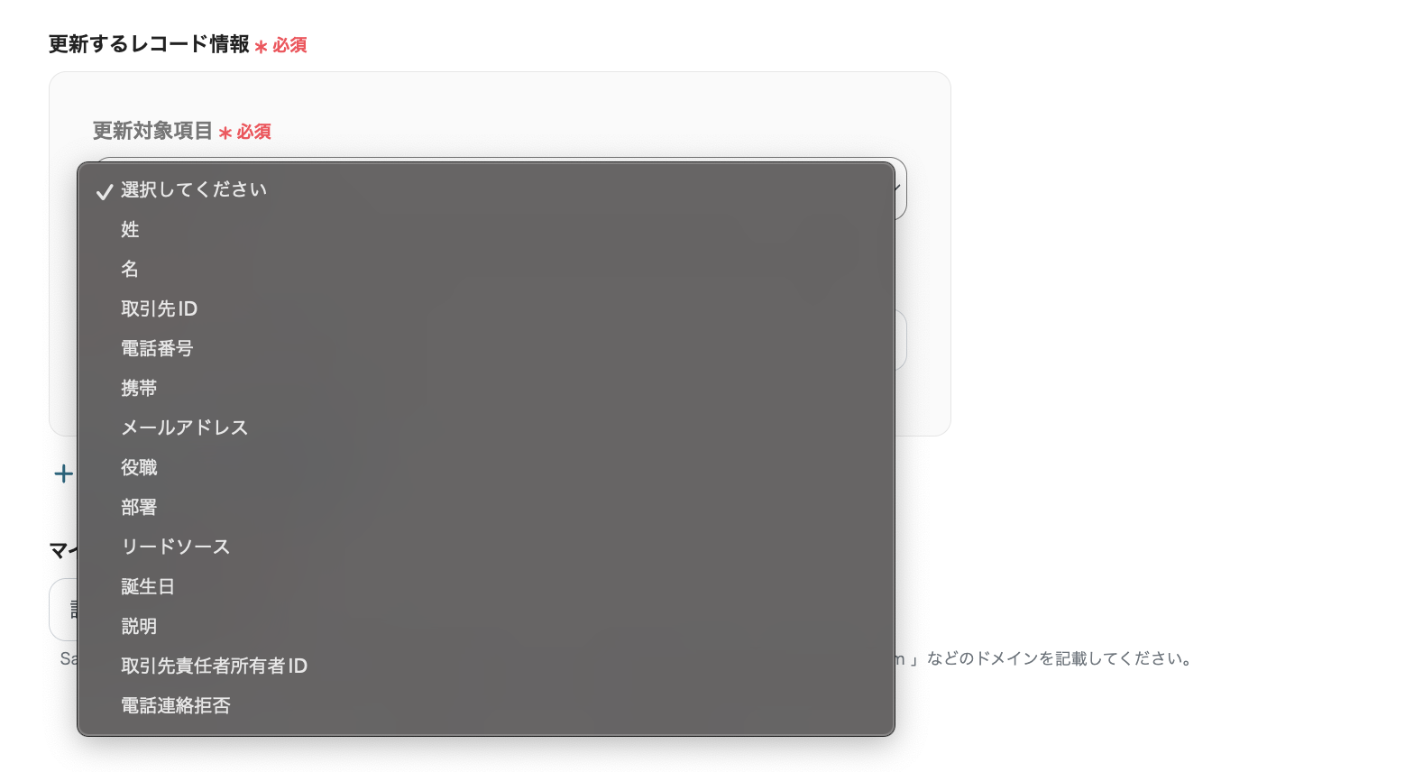 更新するレコード情報を追加したい場合、『+更新するレコード情報を追加』をクリックすると設定値を追加できます。