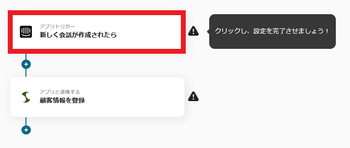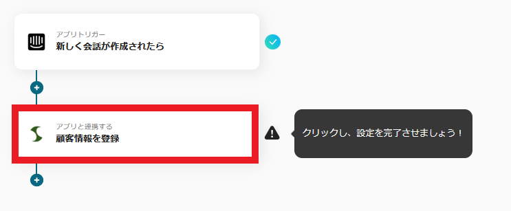 4.これで、【Intercomで新しい会話が作成されたらサスケに顧客情報を登録する】というフローが完成しました。