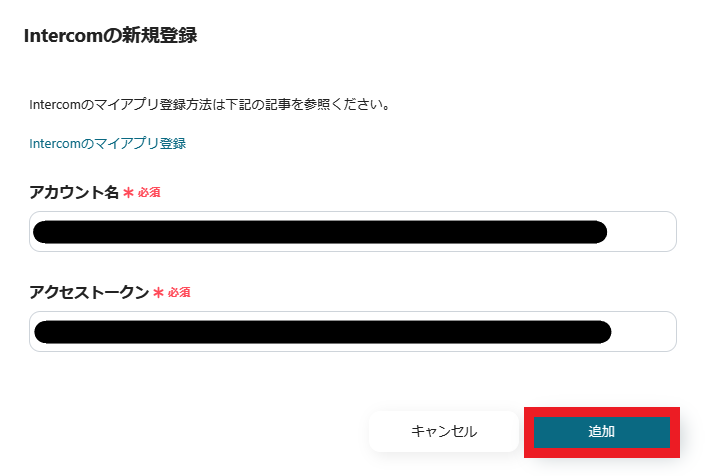 「追加」をクリックすると、Intercomのマイアプリ登録は完了です。